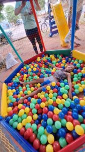 Estrutura de Lazer: Pula-pula, piscina de bolinhas, escorregadores e um imenso tobogã inflável.